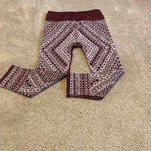 Fabletics High-Waisted Seamless Lace Capri Leggings Burgundy and Sand