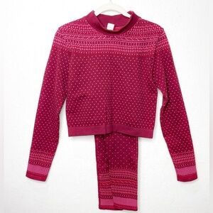 Fabletics Holly Seamless Fair Isle Long Sleeve Top & Leggings Set Merlot XL