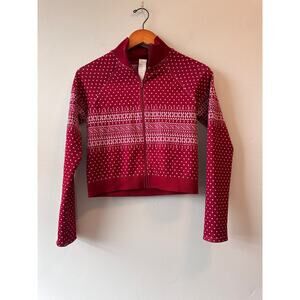 Fabletics Holly Seamless Jacket Red & White (Apple Spice Multi) size large.