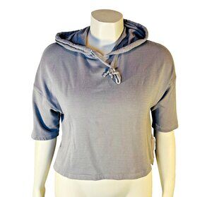 The Fabletics Hooded Sweatshirt is a stylish and comfortable women's activewear piece perfect for gym workouts or casual wear. Made from a heavyweight knit fabric in a solid grey color, this hoodie features a high neckline with a pullover closure and short dolman sleeves. The relaxed fit and hooded style make it ideal for urban, minimalist-themed outfits in the summer, fall, or spring seasons. Easy to care for with machine washable instructions, this hoodie is a versatile addition to any active woman's wardrobe. Measurements: 20.5" armpit to armpit and 18" length. Please verify these are larger than your own to ensure it fits. Dress form is a size 12 with a 38” bust. Note: This sale is final unless the product received does not match the listing.