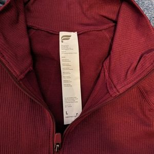This is a red Fabletics Jacket. It's a size large which is an 8-10.