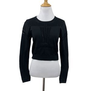 Fabletics Jaymee Mesh Shirt Womens L Large Cropped Moisture Wick Long Sleeve