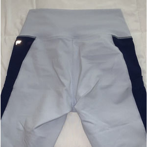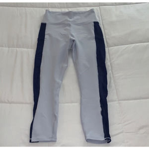 Up for sale is one of the more functional legging offerings from Fabletics, the High-Waisted Mesh Powerhold Capri in Powder Blue / Navy with mesh side pockets in size large. This is a re-issue of the famous Mila capri in new colors, of which I have every incarnation...lol. I wear them frequently to the gym and for traveling, they're so versatile. This particular color style was released in an exclusive capsule collection from Kate Hudson.