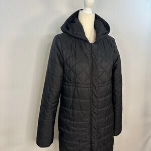 Fabletics Knee Length Hooded Puffer Jacket Black