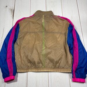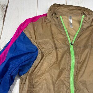 Fabletics Large Women Cropped Windbreaker Lightweight Jacket Neon 80s Colorblock