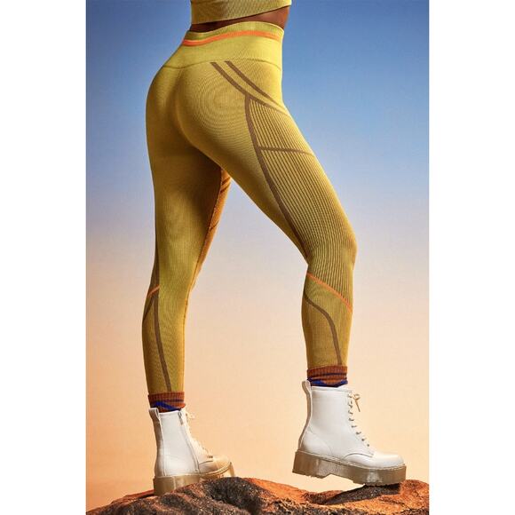 Fabletics Leggings Womens XL Olive Orange Seamless High Waisted Stretch Gym Pants