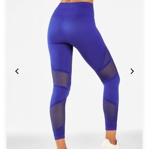 These blue leggings are perfect for working out or a Sunday stroll. They are complimentary with a high waisted design and cooling with the mesh panels.