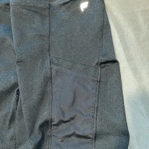 Fabletics full length leggings with mesh sides and mesh pockets on both sides. Inside waist band pocket.