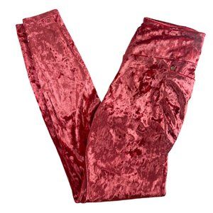 Fabletics Leggings Crossover Crushed Velour Red High Rise Women XXS Athleisure