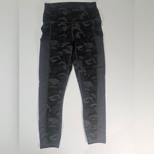 Fabletics Leggings Women's 22 Waist Black Camo Paneled Activewear Yoga Pants