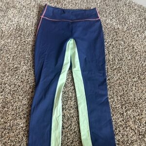 Stylish Fabletics leggings. Features a blue body with green accents. Ideal for active wear. Motion 365, tags are removed.. fit like m/l