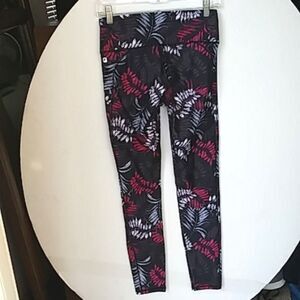 Fabletics Leggins Womens Fern Print Black Pink White Thick Stretchy w/ Pockets