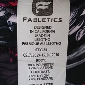 Fabletics black leggings with pink and white fern print and pockets. Very thick stretchy material. In great condition. The measurements are as follows: