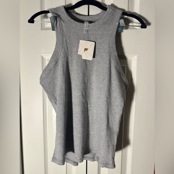 Chic light gray muscle tee. Soft ribbed fabric. Ideal for workouts or casual wear.