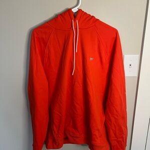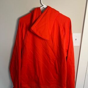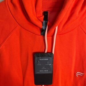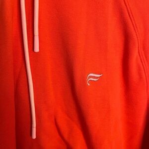 bright orange/pink Fabletics hoodie, features a drawstring hood, perfect for casual wear or a lazy day!