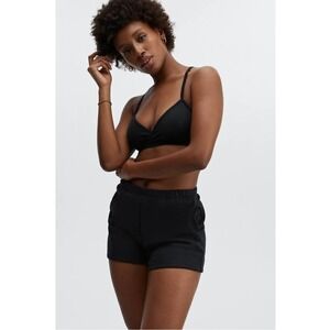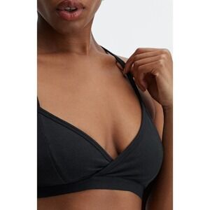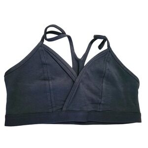The Live In Racerback Bralette by Fabletics features a crossover front, supportive racerback, and thin spaghetti straps.
