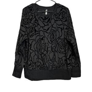 Fabletics Lola Back at it Black Rose Print Flock Long Sleeve Top Size M