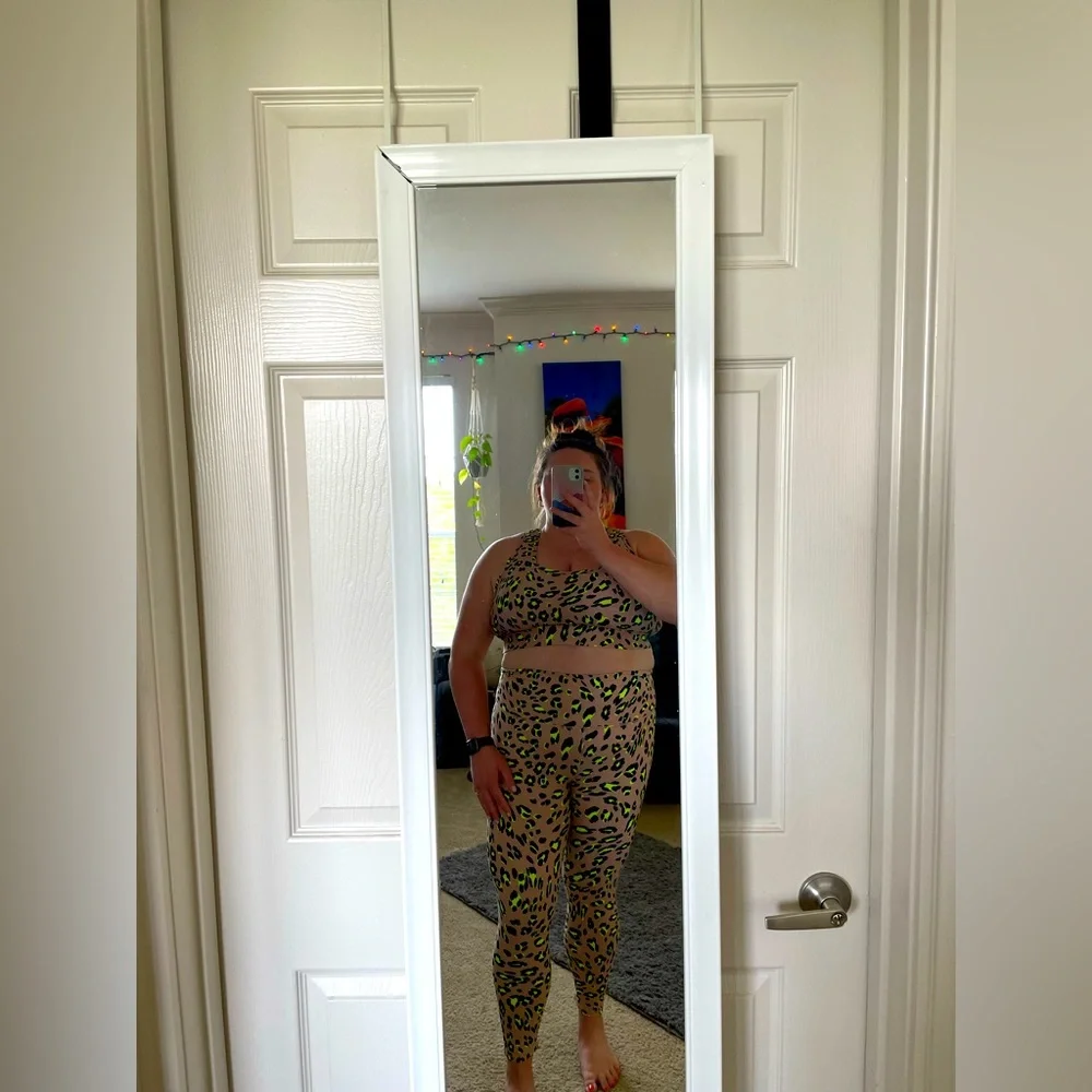 Fabletics Matching Leopard Print Set - never worn, neon yellow and tan leopard print