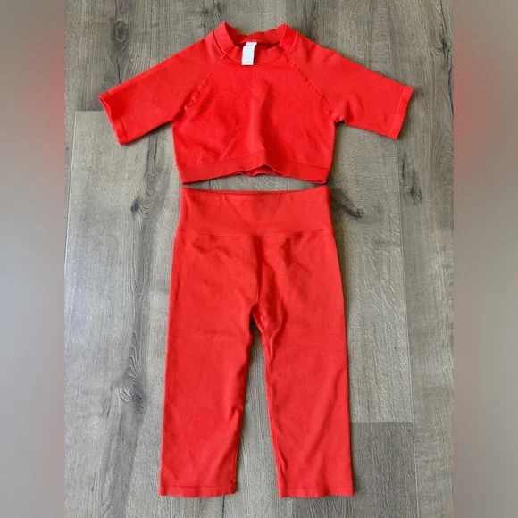 Selling adorable Fabletics matching workout set. Like new condition. Top is cropped, size L but sits like a M. Leggings are high waisted and hit at capri length, size M. Asking $20 for set. Smoke free home.
