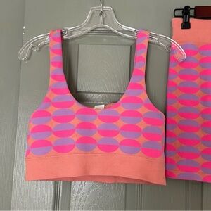 Fabletics Matching Set in Pink and Orange Geometric Modern Design