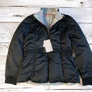 Fabletics Medusa Reversible Belted Puffer Jacket Black/Arctic Print Size XL NWT