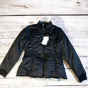The Fabletics Medusa jacket is a flattering, stylish, reversible jacket, perfect for the girl who loves to cozy up by the fireplace apres-ski, in this ski-inspired jacket. Two jackets in one-classic black on one side or reverse it for a multicolor arctic print. The included belt in stretch elastic with metal clasp, creates a flattering silhouette. Hidden pockets in the sleeve and lining zip up to keep valuables safe. Size XL, new with tags.