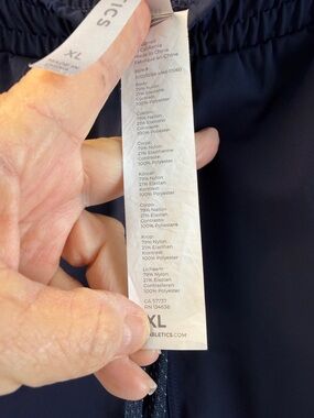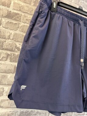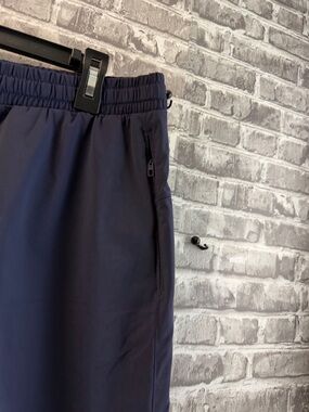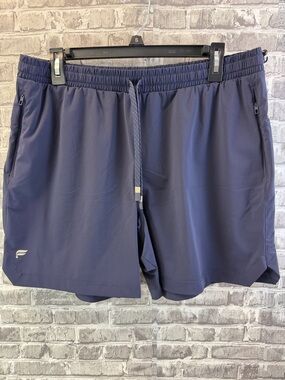 Lightweight Fabletics navy shorts with an elastic drawstring waist for a secure fit. Moisture-wicking stretch fabric for comfortable movement. Zippered side pockets keep essentials safe. Subtle logo detail for a clean, sporty look. Used but in great shape. Size XL.
