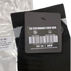 Fabletics Mens Performance Crew Sock Black Grey Stripe Black Logo LARGE NWT