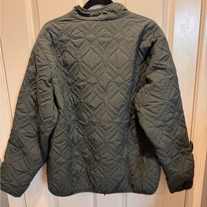 Stay warm and stylish with this quilted jacket. Perfect for any occasion, this green jacket offers comfort and durability. Reversible