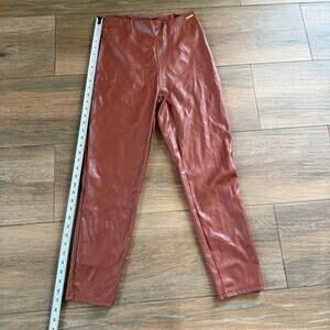 Fabletics Mid-Rise Vegan Leather Leggings in a rich Mahogany color. These leggings are a size Large and offer a stylish, comfortable fit with a sleek vegan leather finish. Perfect for adding a touch of edgy sophistication to any outfit! These leggings are in excellent condition.