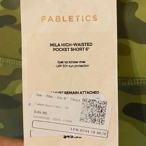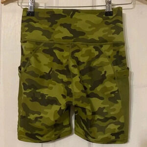 Fabletics Mila High Waisted Pocket Biker Shorts 6” Camo Green Size XS Athletic. These shorts are new with tags. Great condition. No flaws. Measurements: 12 inch high waist 9 inch rise 5 inch inseam 14.5 inch full length