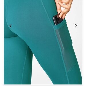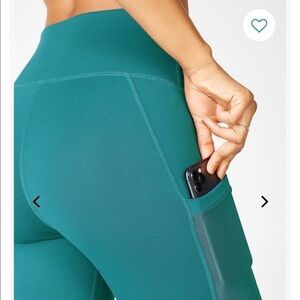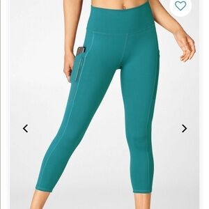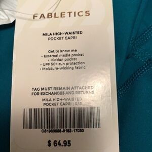 Fabletics mila high waisted capris with external media pocket, hidden pocket in front inside of waistband, moisture wicking fabric, and the amazing Powerhold technology. If you haven’t tried it before, it’s time!! You’ll love them! True to size small.