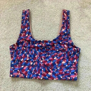 Fabletics Mosaic Print Workout Set. Both top and bottom are in XS. The prints are less bright in person.