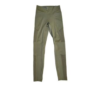 Fabletics Motion 365 High Waisted Moto Leggings Pockets Olive Green Women's XS