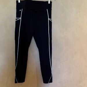 Sleek black leggings from Fabletics. Ideal for active wear.2 side pockets . Silver pipping .7/8 and midrise. Excellent condition