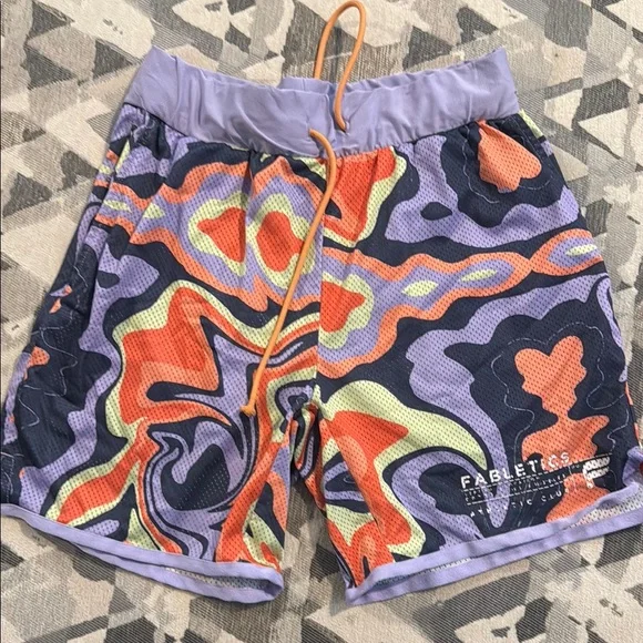 Dynamic shorts with abstract design. Features drawstring waist & pockets. Perfect for workouts.