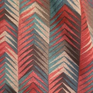 Vibrant burgandy, teal, charcoal, and black chevron pattern. Ideal for workouts or casual wear. Comfortable fit.