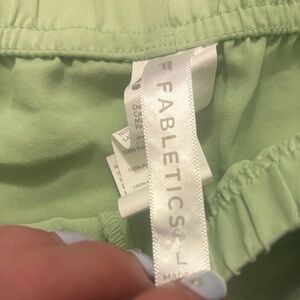 These are Fabletics brand which is a very high quality and expensive brand! They are NWT, retailing at $59.95!! These are a woman’s size large. They are a light neon green color. They are cropped trousers, capri length. The waist is elastic, and there are slip pockets on both sides of the pants. There is a small gold metal charm with the brand logo under one of the slip pockets. They have white lines along the bottom of the legs. They are brand new and would be great as lounge pants or for a casual summer or spring outfit!! These are a great find!