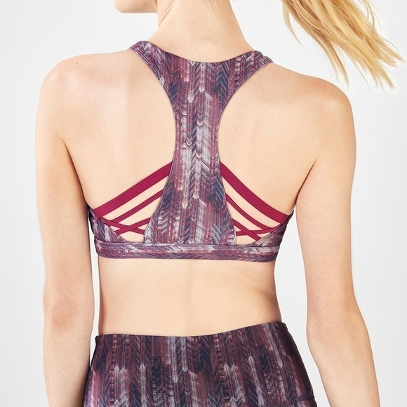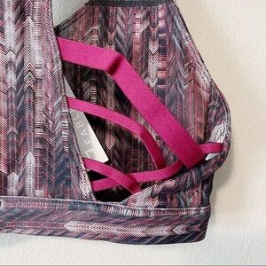 Brand new with tags Fabletics Kessler Medium Impact Sports Bra in Catania/Dark Rose print. Size XXS. Medium support. Removable cups. Strappy design. Retailed for $49.95. NWT.