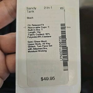 Fabletics NWT Sandy 2 In 1 Tank Black Size XSmall Semi Sheer Mesh No Bra