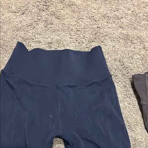 Stylish navy high-waisted leggings. Perfect for workouts or casual wear.