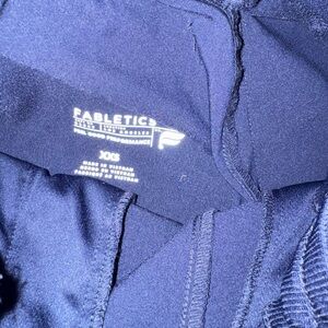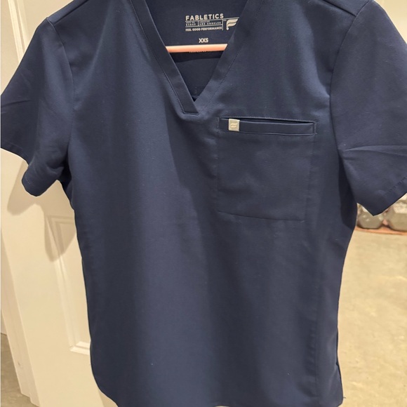 Navy blue Fabletics scrubs. Brand new never worn! V-neck design with one pocket. High waisted wide leg pants. Comfortable fit. And super cute.