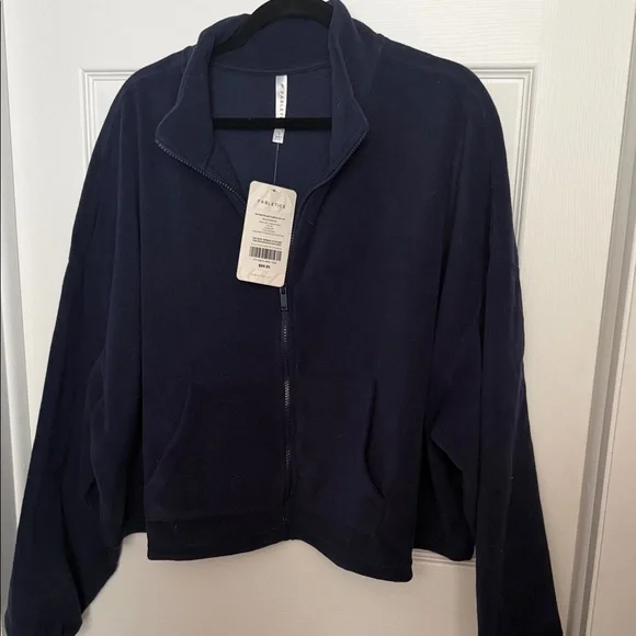 Navy utility jacket with front pockets. Zip closure for easy wear. Perfect for casual outings.