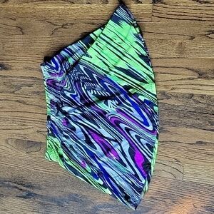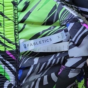 Mikah Skirt by Fabletics. Water marble printed striped neon, hot pink, yellow, purple, black, white, grey. Silk touch fabric. Zipper pockets. Elastic drawstring waist. Size Medium.