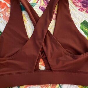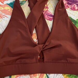 Fabletics Oasis Twist Medium Impact Sports Bra Mahogany Sz XL