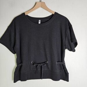 Fabletics Odin French Terry Tee Sweatshirt Cinch Eyelet Waist M Black