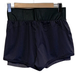 Fabletics Olesia Shine Dark Gray Floral Trim Double Layer Workout Shorts Size S
