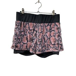Fabletics Olesia Shine Shorts Womens Medium Stretch Pink Black 2 in 1 Compression
