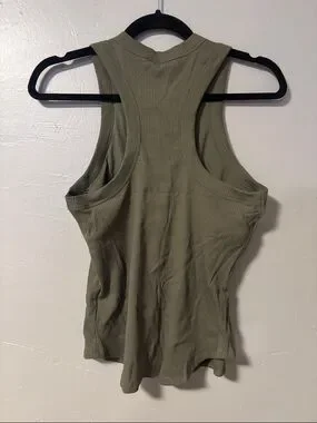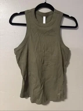 Fitted ribbed tank with a high neckline. Sleeveless design ideal for layering or warm days. Stretch fabric for comfortable movement. Clean, minimal silhouette pairs with casual or active styles.