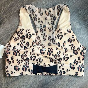 Fabletics On-The- Go Large Leopard Print Sports Bra with Cut Out